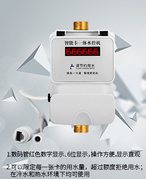 1、可以限定每一张卡的用水量,超过额度拒绝用水; 2、在冷水和热水环境下均可使用; 3、IC卡可以扩展为一卡通,兼容考勤、门禁、消费、停车场等系统。 【主要参数】